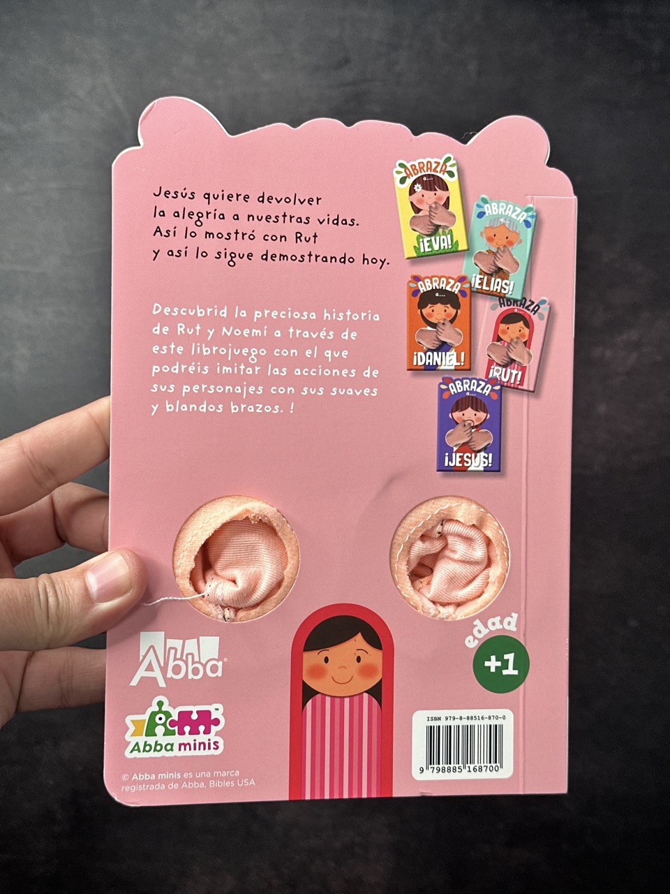 Descubrid la preciosa historia de Rut y Noemí a través de este libro-juego con el que podréis imitar las acciones de sus personajes con sus suaves y blandos brazos!