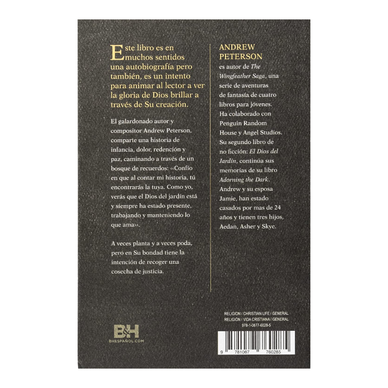 El galardonado autor y compositor Andrew Peterson, siendo lo más honesto posible, comparte una historia de infancia, dolor, redención y paz, caminando a través de un bosque de recuerdos: «Confío en que al contar mi historia, te encontrarás con la tuya. Con suerte, como yo, verás que el Dios del Jardín está y siempre ha estado presente, trabajando y manteniendo lo que ama». A veces planta, a veces poda, pero en su bondad tiene la intención de cosechar una cosecha de justicia.