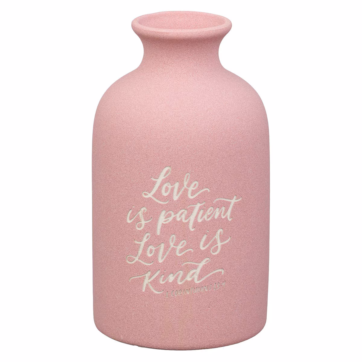 Añade un tierno recordatorio del amor verdadero a tu hogar con el jarrón de mesa de cerámica rosa «El amor es paciente» . Su suave color y su sincero mensaje aportarán gracia y belleza a cualquier espacio que elijas decorar.