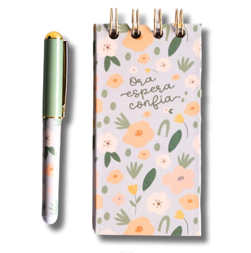 Incluye una libreta de tapa dura en tamaño pequeño, fácil de guardar en tu bolso, mochila o incluso dentro de tu Biblia. Viene acompañada de un bolígrafo elegante y de escritura suave, ideal para llevar siempre contigo ✍️🕊️.