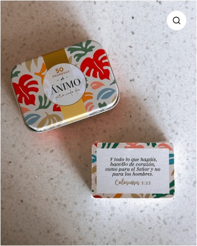 Contiene 50 tarjetas, cada una con un versículo bíblico único, impreso en ambos lados.