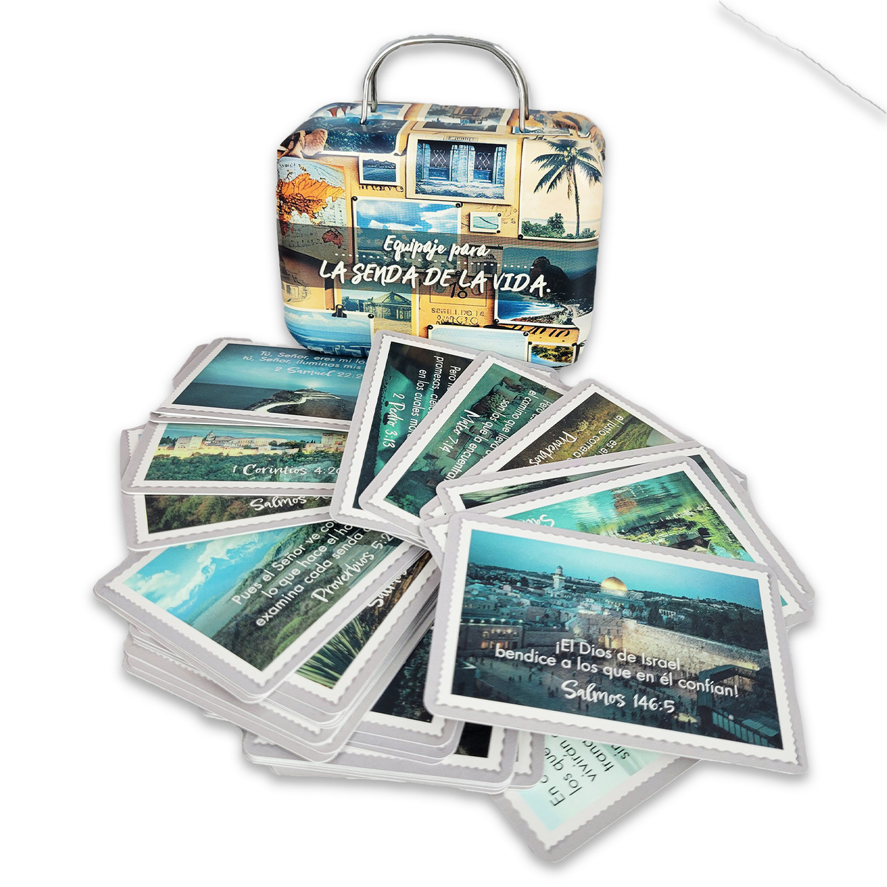 40 tarjetas con promesas bíblicas para leer cada día. Viene en una caja metálica de bello diseño. En el reverso hay espacio para una dedicatoria.