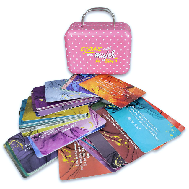 40 tarjetas con promesas bíblicas para leer cada día. Viene en una caja metálica de bello diseño. En el reverso hay espacio para una dedicatoria.