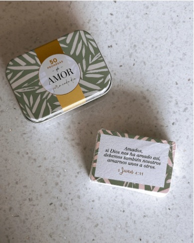 Contiene 50 tarjetas, cada una con un versículo bíblico único, impreso en ambos lados.