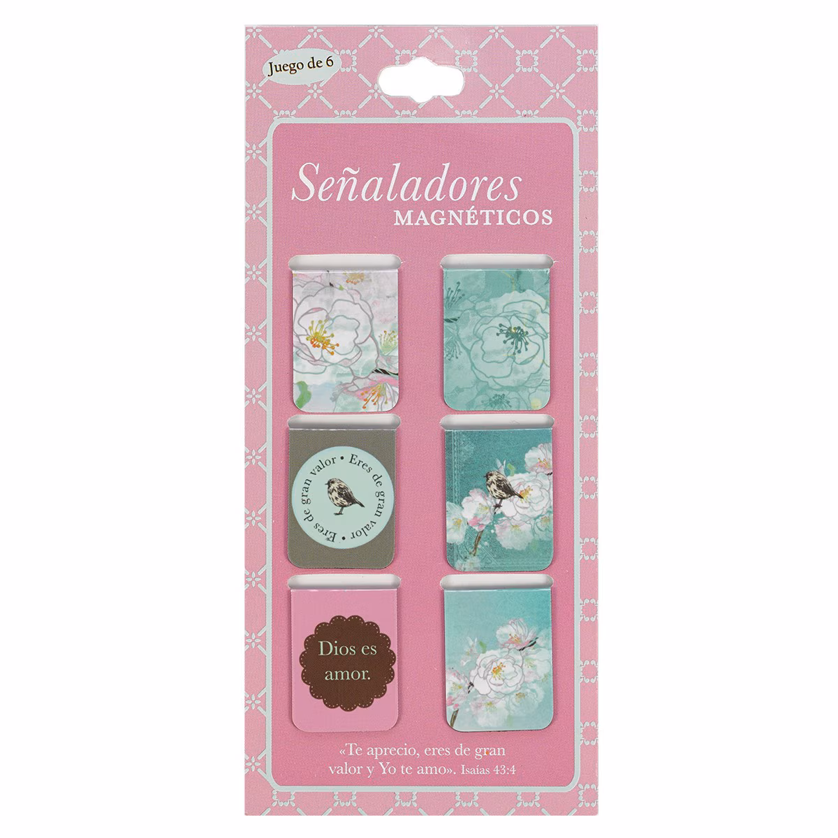 Marque su página con estilo con esta colección de seis separadores magnéticos de color pastel. El diseño es una mezcla de arte, hermosos gráficos, versículos de la Biblia y frases inspiradoras. Cada cartón tiene seis motivos diferentes que hacen juego, y en cada paquete hay tres cartones.