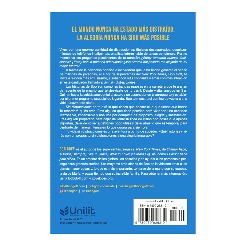 En Sin distracciones, Bob Goff amorosamente nos tira de nuevo a nuestro carril y nos ayuda a retomar el rumbo para que podamos vivir nuestras vidas con verdadero propósito y alegría.