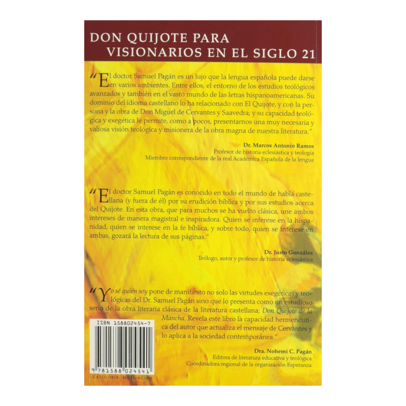 Este pequeño libro es una hermosa colección de ensayos de profundo pero ameno quehacer teológico y literario. El mismo trabaja temas como la amistad (Sancho), la mujer (Dulcinea), la contextualización del quehacer teológico, la esperanza, y la teología en Don Quijote.